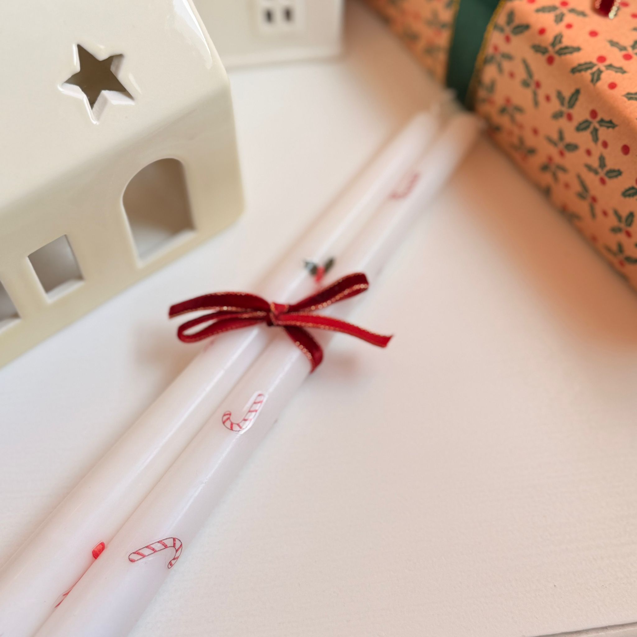 شمعة طويلة بتصاميم شتوية مع ملصقات