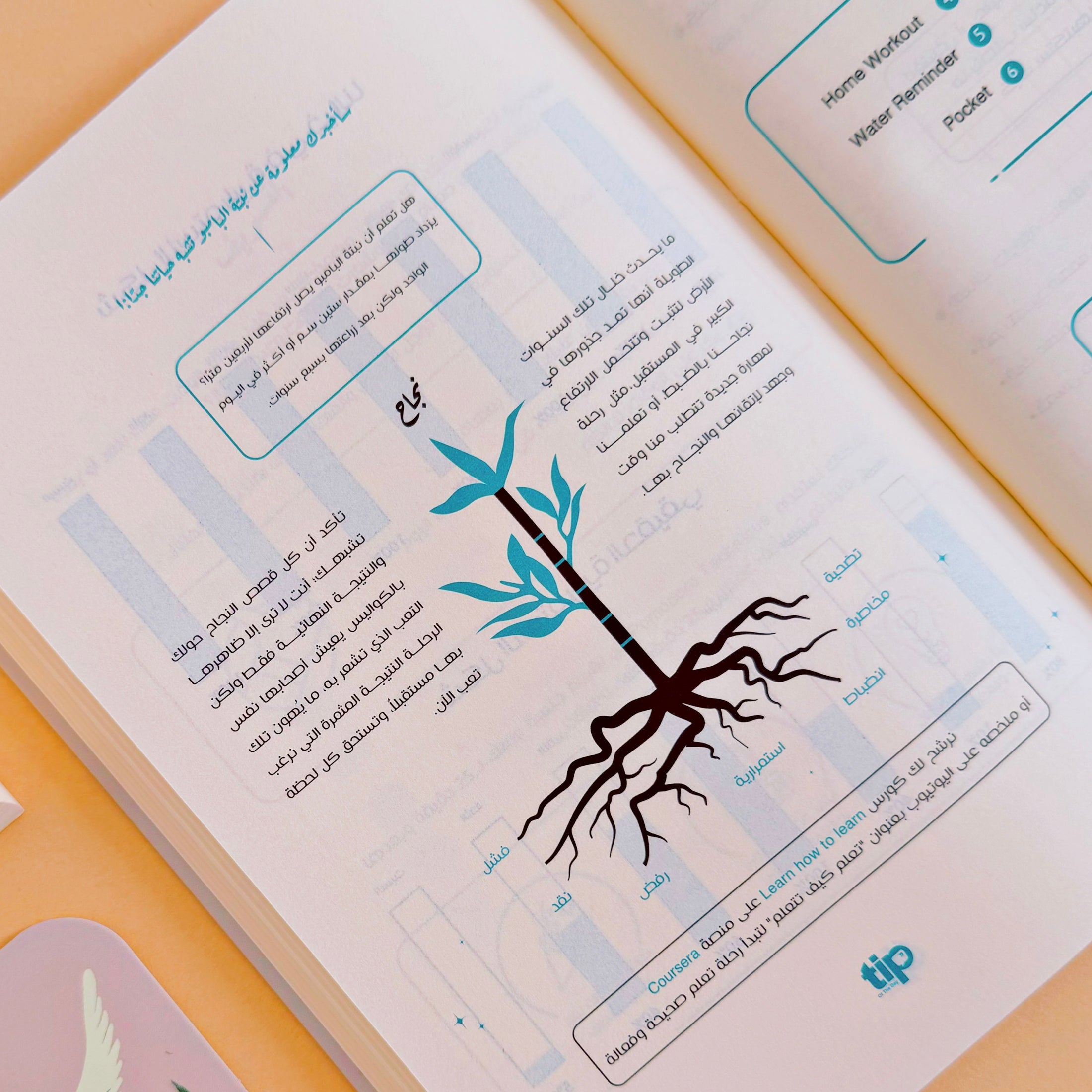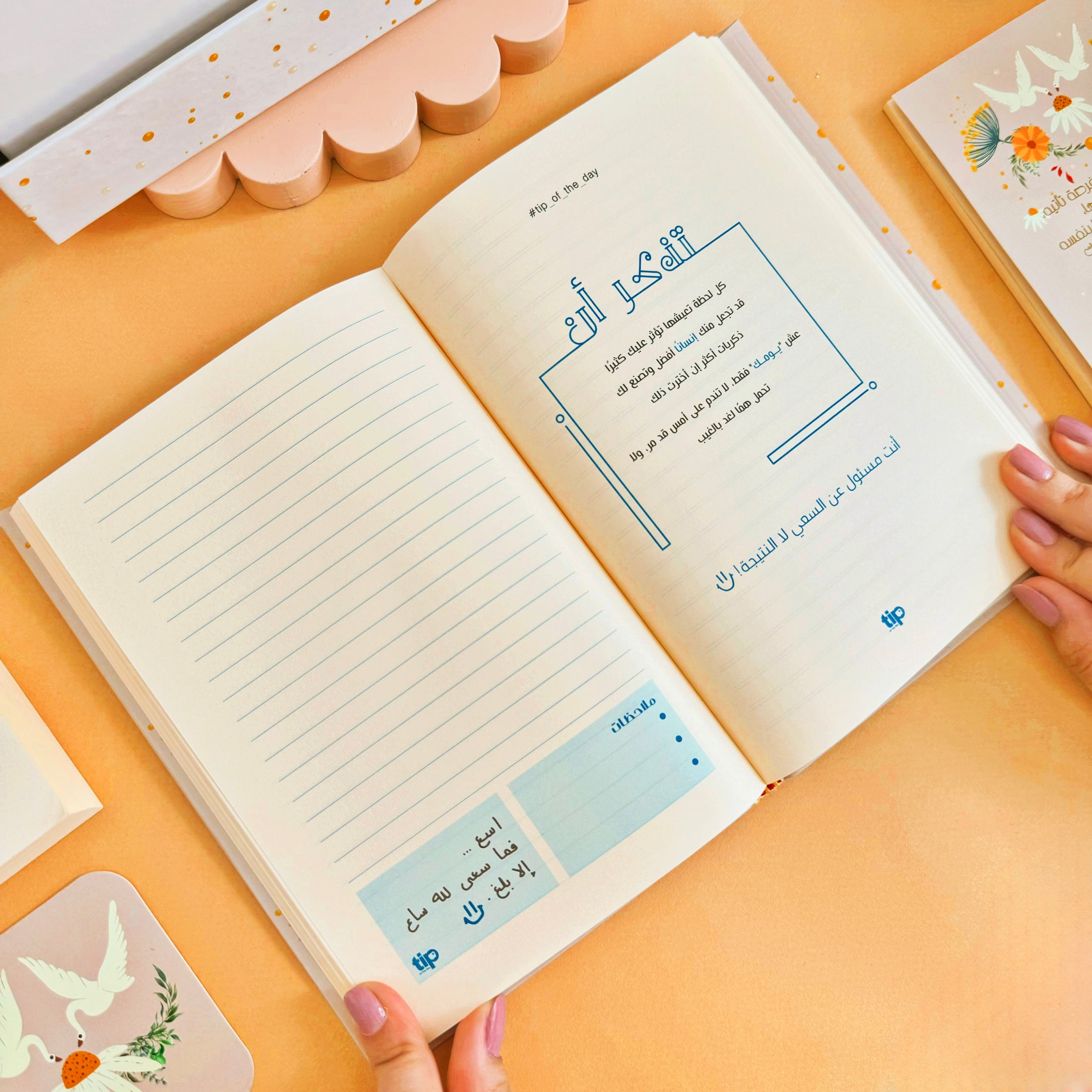 -نوت بوك عدد صفحاته 192 صفحة مسطرة وبها 8 فواصل تحفيزية و 9 رسائل ملهمة.