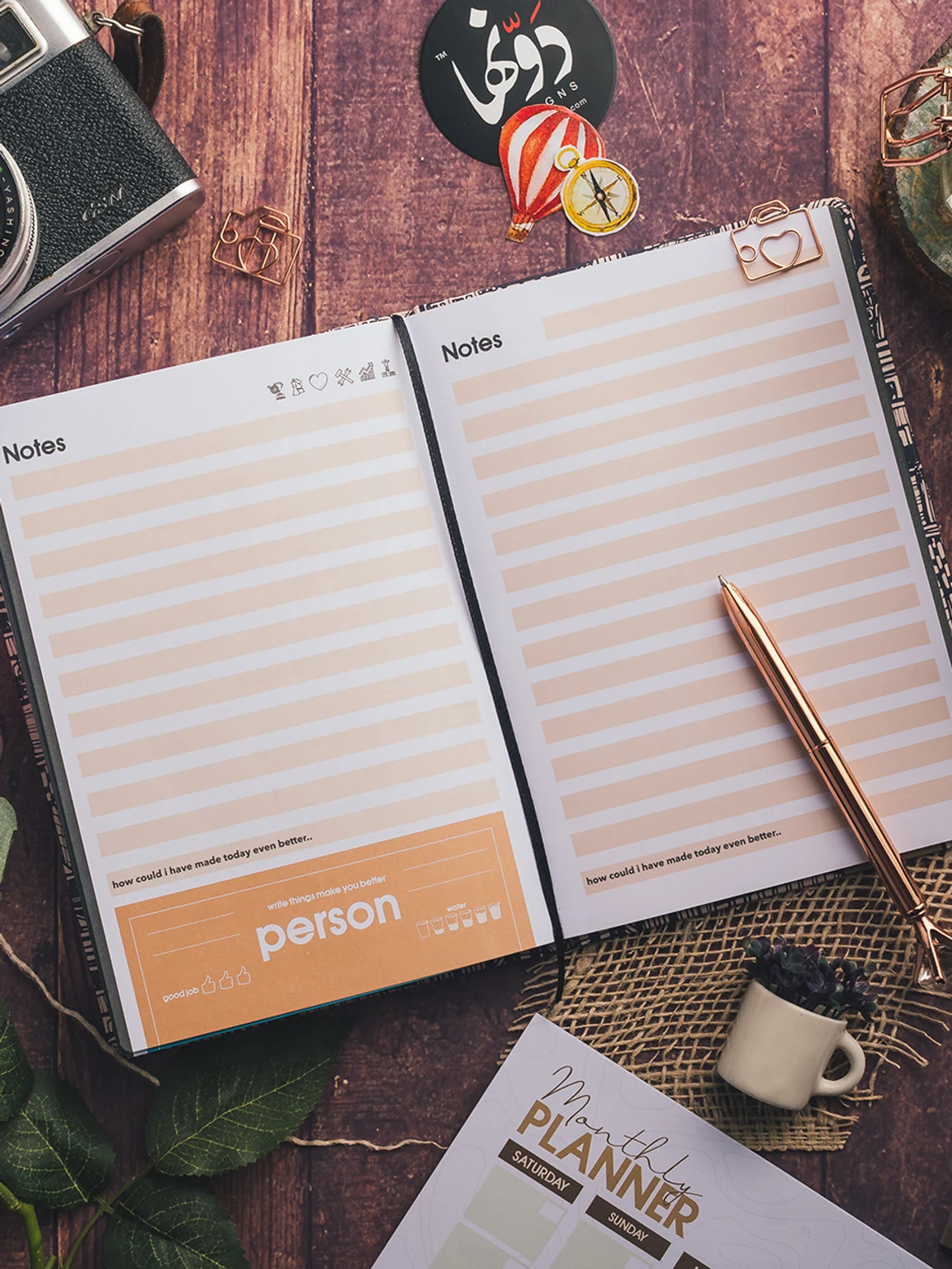 دفتر المغامرات هو الصديق المثالي لجميع الاشخاص المحبين للتدوين والمغامرة، فإن دفتر المغامرات سيساعدك في التخطيط لرحلتك إلى الاستكشاف. وهي تتضمن أقسامًا للتخطيط وصفحات للميزانية ومساحة كبيرة لتسجيل الملاحظات حول رحلتك. كما صمم الدفتر لمساعدتك على تنمية السعادة وتحقيق الأهداف، وستجد متتبعًا للتقدم لمساعدتك على التفوق على أهدافك، وإقرارًا بالامتنان اليومي لتشجيع الإيجابية الداخلية، ومتتبعًا أسبوعيًا للعادات للحفاظ على عقلية البطل دون انتكاسة، إنه منظم مثالي تمامًا لأصحاب الإنجازات العالية ليصبحوا أفضل نسخة من أنفسهم.
