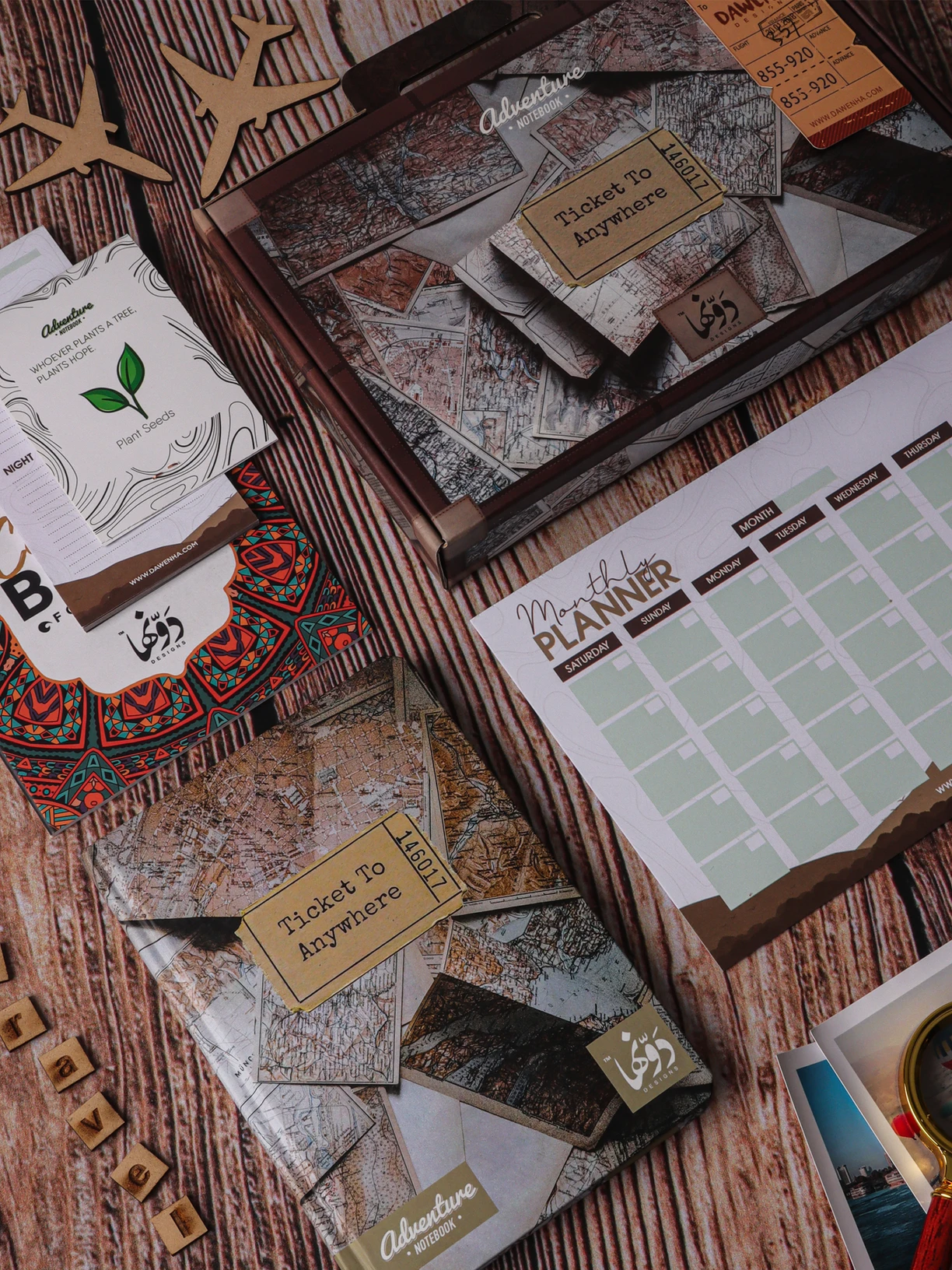 باكيج المغامرات هو الصديق المثالي لجميع الاشخاص المحبين للتدوين والمغامرة، باكيج المغامرات سيساعدك في التخطيط لرحلتك إلى الاستكشاف. حيث يتضمن أقسامًا للتخطيط وصفحات للميزانية ومساحة كبيرة لتسجيل الملاحظات حول رحلتك. كما صمم دفتر المغامرة لمساعدتك على تنمية السعادة وتحقيق الأهداف، وستجد متتبعًا للتقدم لمساعدتك على التفوق على أهدافك، وإقرارًا بالامتنان اليومي لتشجيع الإيجابية الداخلية، ومتتبعًا أسبوعيًا للعادات للحفاظ على عقلية البطل دون انتكاسة، إنه منظم مثالي تمامًا لأصحاب الإنجازات العالية ليصبحوا أفضل نسخة من أنفسهم. الباكي يحتوي على العديد من المنتجات المميزة وهدية باكيج بذور الليمون لتترك اثرك في كل مكان.
